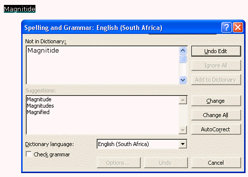 spelt, but not recognised by Word, you could click on the
